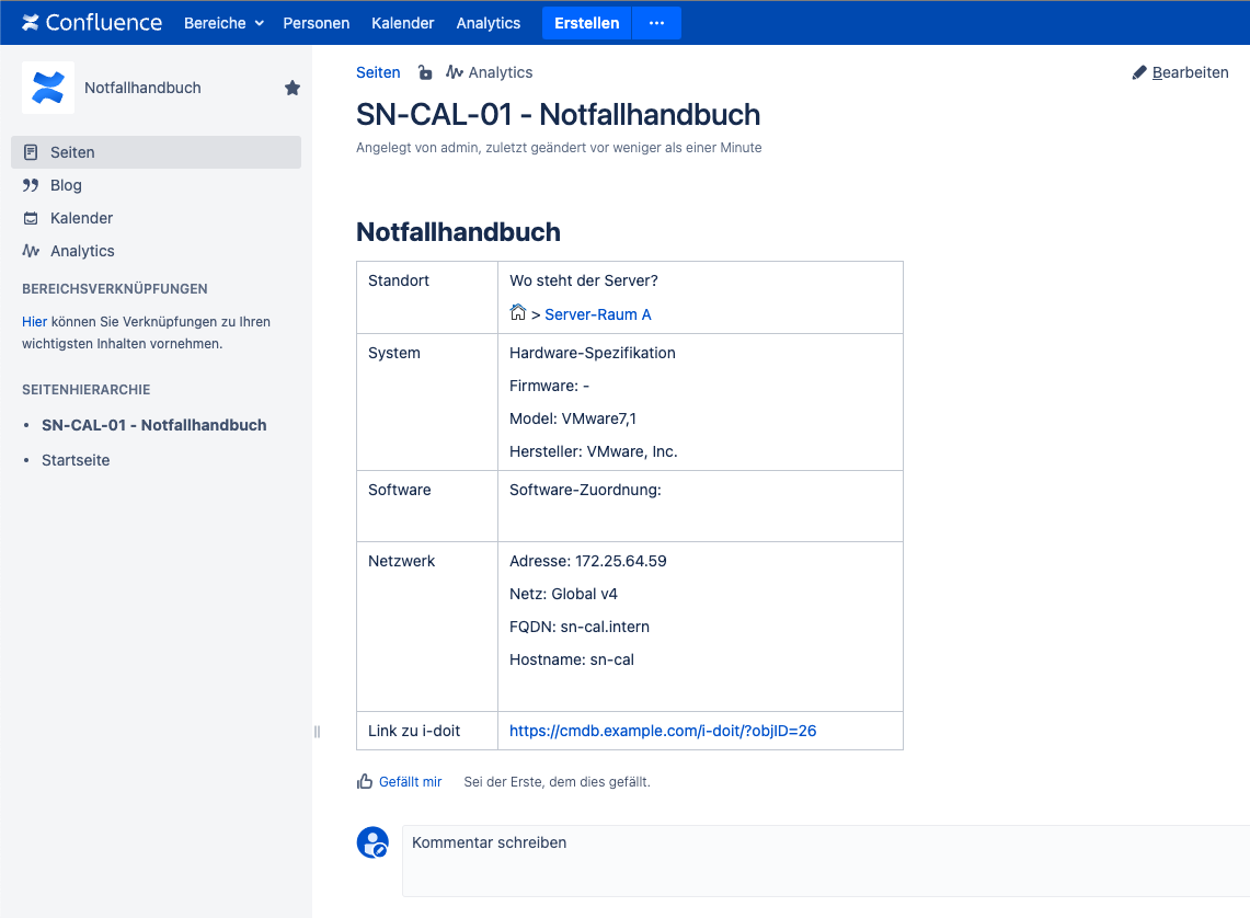 Das i-doit pro Confluence Export Add-on ermöglicht es in i-doit pro über das Dokumente-Add-on ein Dokument zu generieren und dies an Confluence zu übertragen. Wenn in i-doit Objekte bearbeitet werden, wird automatisch die Confluence-Seite aktualisiert. Dieses Add-on kann auch für die Confluence-Cloud eingesetzt werden.