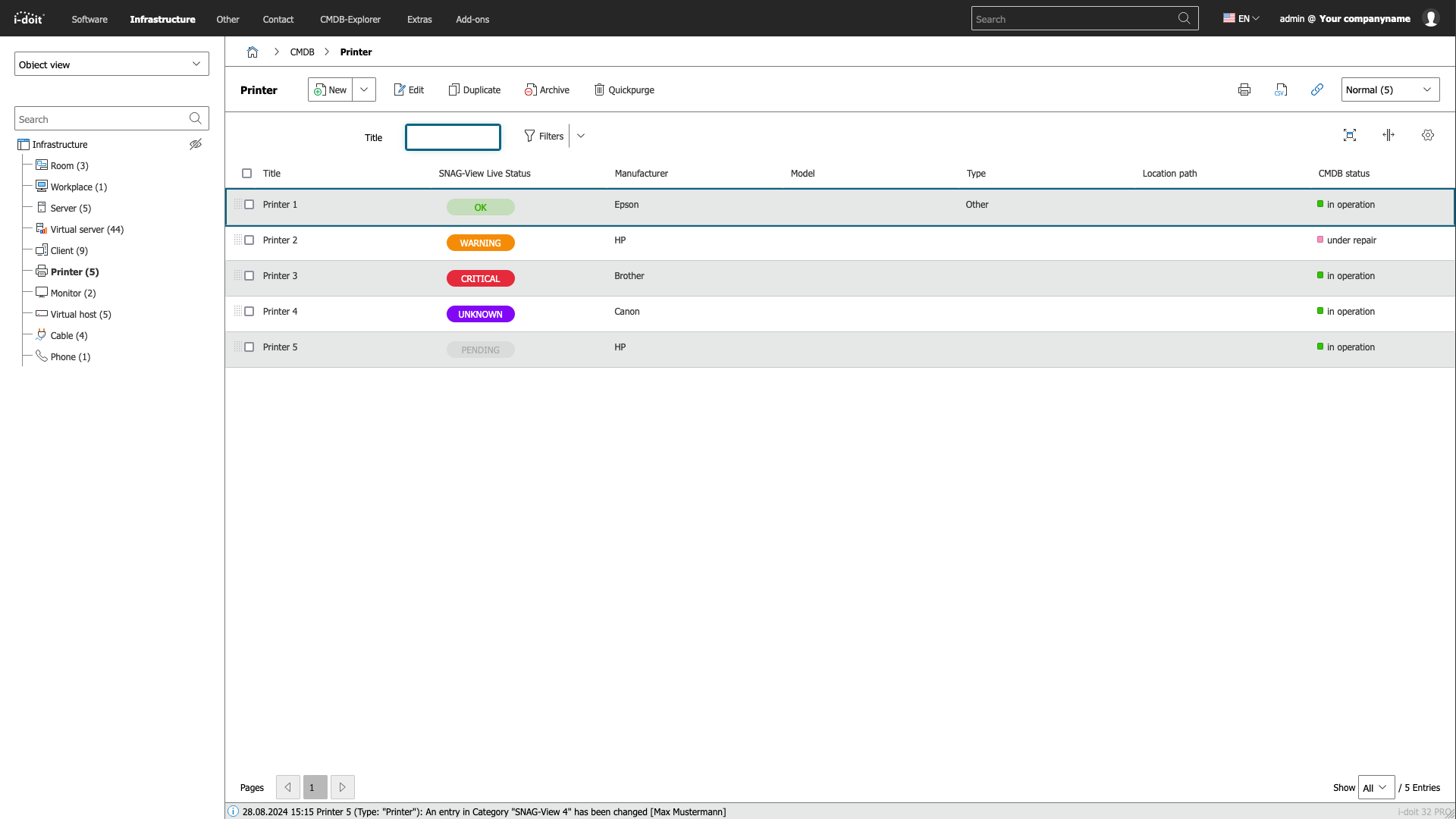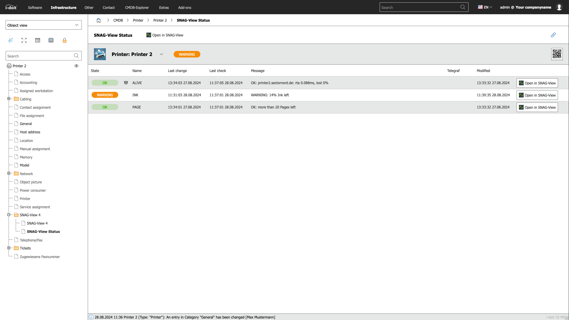 Die Schnittstelle zwischen der i-doit CMDB und der Monitoring-Suite SNAG-View 4 dient als intelligenter Datenlieferant und ermöglicht so die schnelle Aufnahme von i-doit Objekten ins Monitoringsystem.